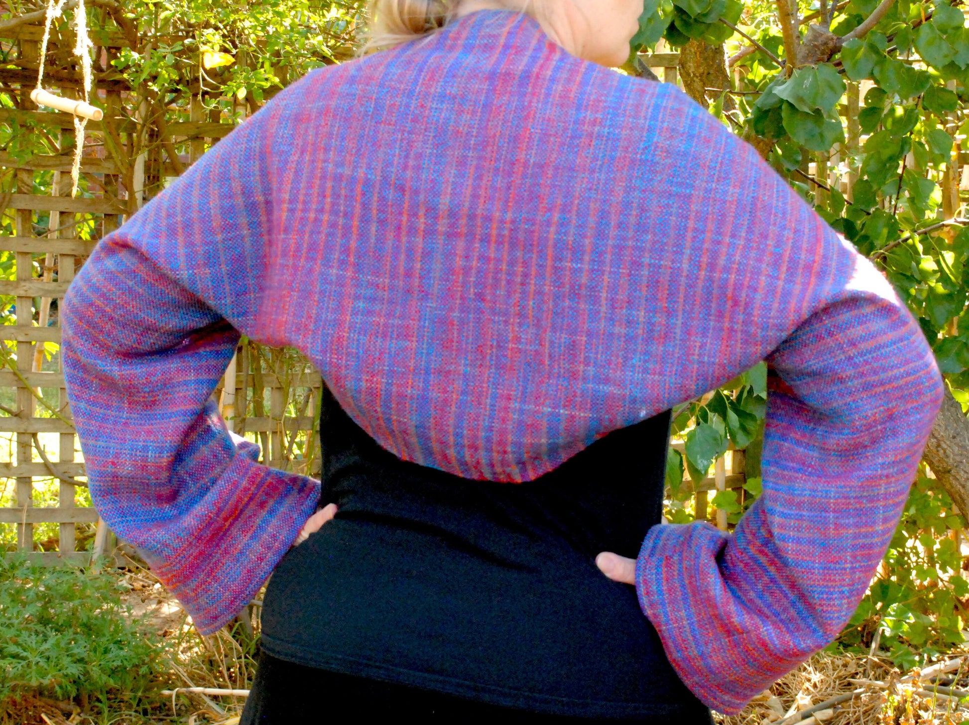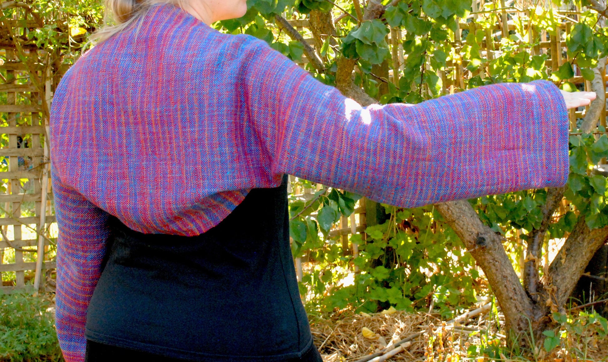 This cardigan was designed to be a simple but beautiful garment - perfect for those who are just starting out sewing with their weaving. It is also a “no cut” pattern for those who may be nervous about cutting their cloth for the first time. It is my interpretation of the classic "hug me tight".
