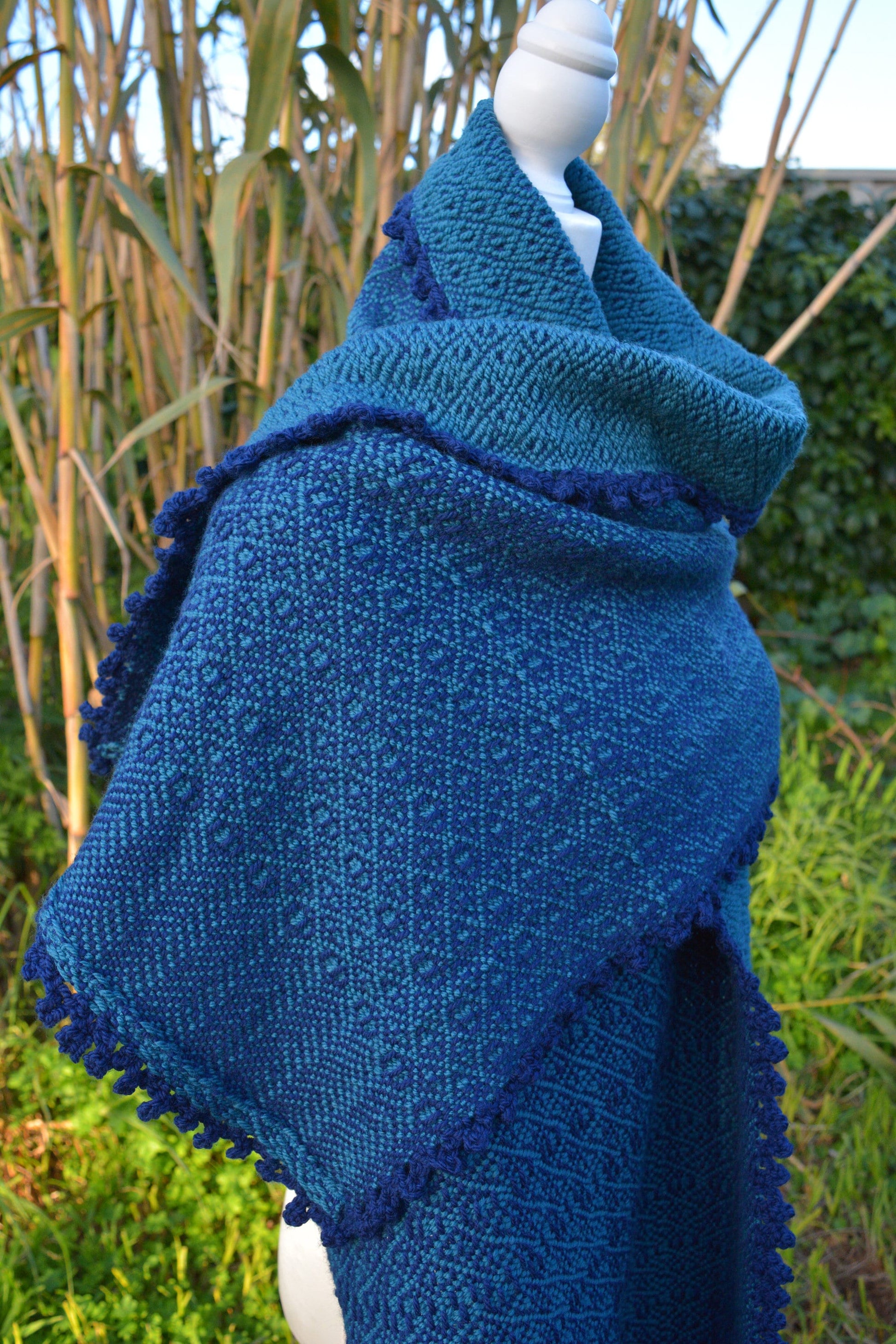 This beautiful shawl was designed to be a special and challenging weave. The crochet edging is optional, but really gives the shawl that "WOW" factor. I have made a video to give you ideas on how to wear your shawl here-